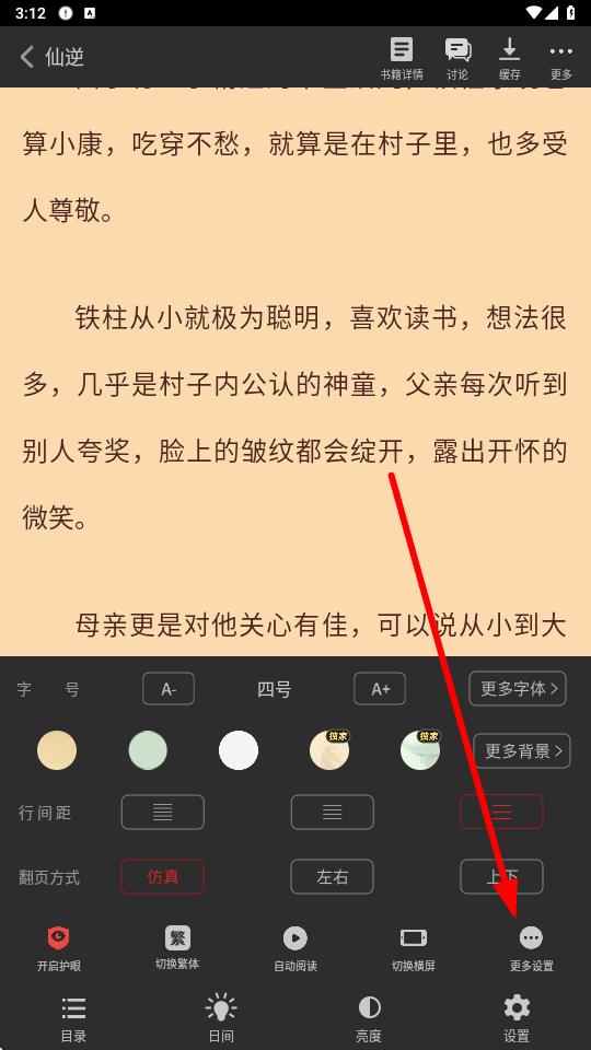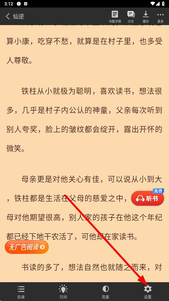 1、在追書神器中打開小說閱讀界面,點(diǎn)擊底部的設(shè)置按鈕齒輪圖標(biāo)。