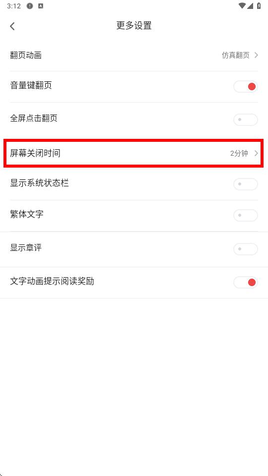 3、在更多設(shè)置頁面,找到屏幕關(guān)閉時(shí)間選項(xiàng),點(diǎn)擊進(jìn)入后即可選擇或自定義屏幕關(guān)閉時(shí)間。