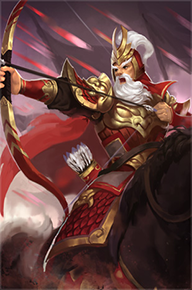 黃忠舉起烈焰之弓,瞄準當前兵力最低的敵軍,射出必誅之箭,對目標造成600%傷害