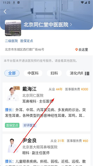 3、在所選醫(yī)院頁面中,查看醫(yī)生列表,選擇你需要掛號(hào)的醫(yī)生。