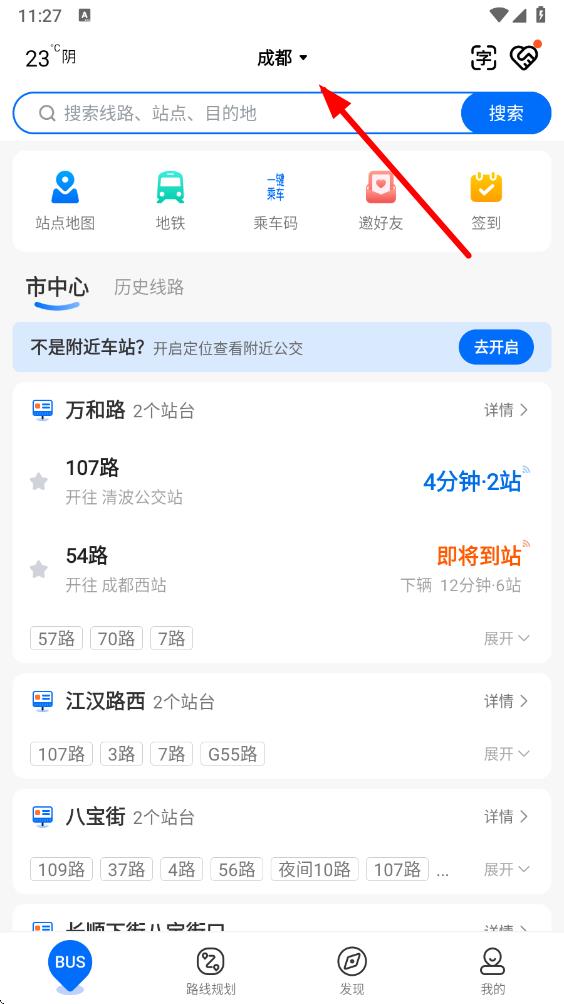 4、成功選擇城市后,界面會切換到所選城市的公交相關(guān)信息頁面,可查看該城市的公交站點(diǎn)、線路等內(nèi)容。