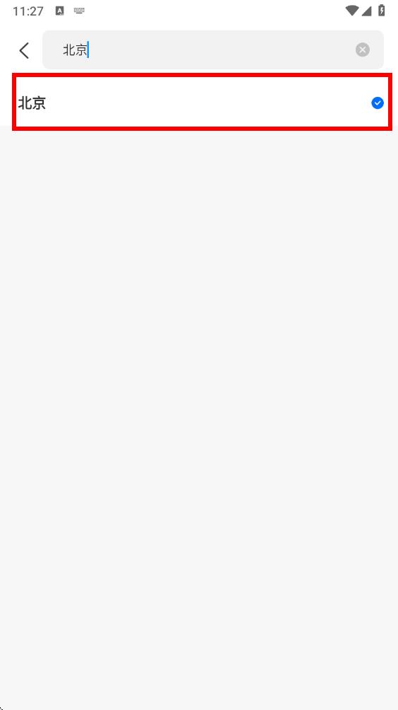 3、輸入城市名稱后,在搜索結(jié)果中點(diǎn)擊對應(yīng)的城市選項(xiàng)。