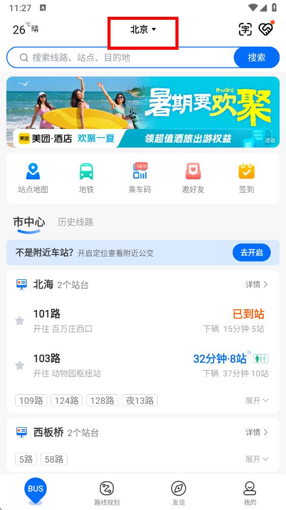 1、進(jìn)入app首頁后,點(diǎn)擊界面上方顯示的城市名稱,進(jìn)入城市選擇界面。