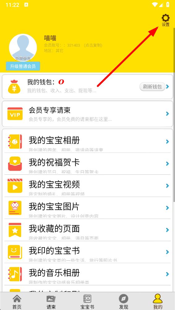 2、在個人中心頁面,點擊右上角的設(shè)置圖標(biāo),進(jìn)入設(shè)置界面。