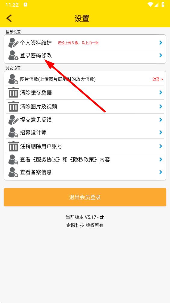 3、在設(shè)置界面中,找到登錄密碼修改選項并點擊,進(jìn)入密碼修改頁面。