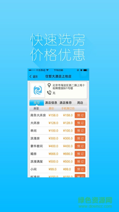 1.選擇房間:房間價格,房價樣式一目了然,使用客戶端還能夠優(yōu)惠付款