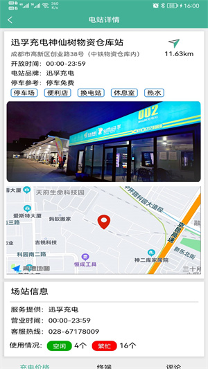 - 詳細(xì)的電站詳情信息在線查看,可以了解當(dāng)前充電樁可以提供的休息服務(wù)等。
