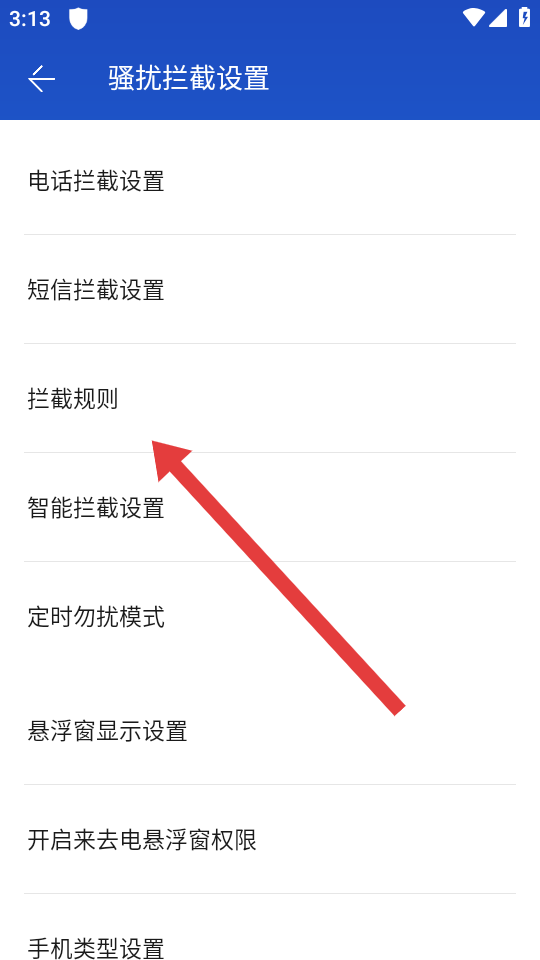 2、在騷擾攔截設(shè)置頁(yè)面中,需要點(diǎn)擊攔截規(guī)則的選項(xiàng),進(jìn)入攔截規(guī)則設(shè)置的頁(yè)面。