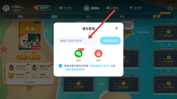 3、在登錄的彈窗中,點(diǎn)擊輸入手機(jī)號(hào)獲取驗(yàn)證碼進(jìn)行登錄。