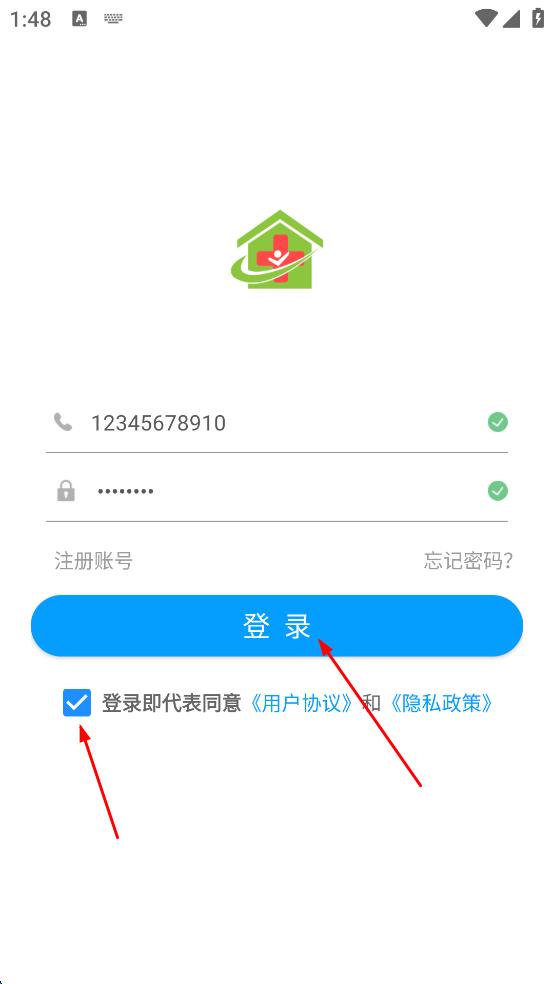 4、勾選登錄即代表同意用戶協議和隱私政策,然后點擊登錄按鈕。