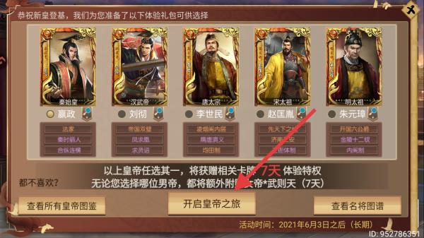 2、涉及角色:秦始皇、漢武帝、唐太宗、宋太祖、明太祖、武則天,選擇后可開啟皇帝之旅。