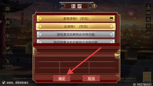 3、呈現(xiàn)了讀取以及界面里的讀檔相關功能提示,比如本地讀檔、云讀檔等,點擊確定后方可進入到場景內(nèi)。