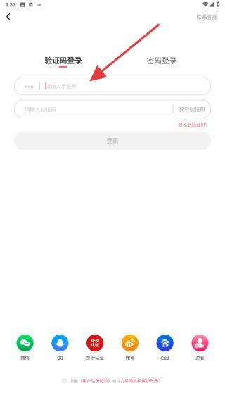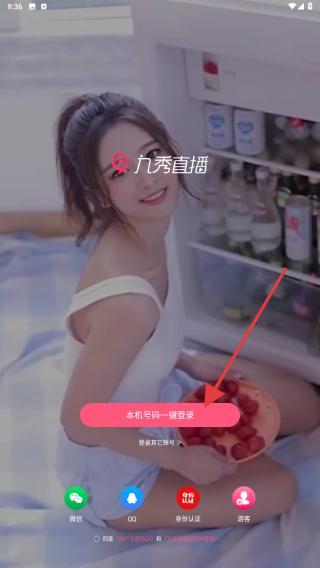 1、打開(kāi)九秀直播APP,進(jìn)入登錄界面后,點(diǎn)擊本機(jī)號(hào)碼一鍵登錄。