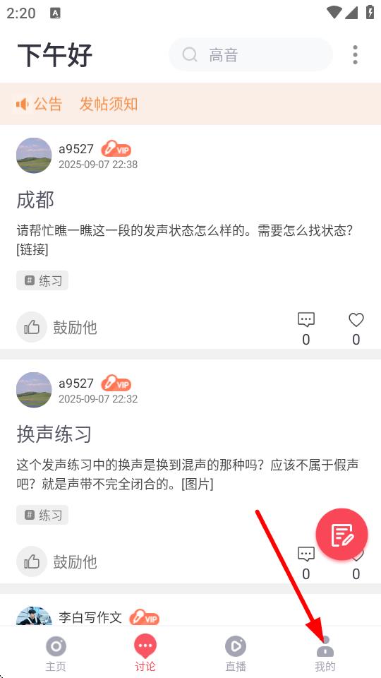 1、進(jìn)入歌者盟學(xué)唱歌app,找到我的選項(xiàng)。