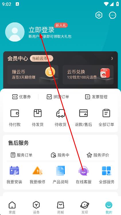 1、打開云米app,點擊底部導(dǎo)航欄我的選項。