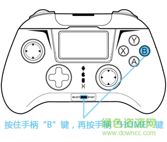 手機(jī)和USB無(wú)線接收器連接之后,將手柄帖近接收器,按住手柄的“B”鍵,再按手柄的“HOME”鍵啟動(dòng)手柄進(jìn)行連接,即可進(jìn)入無(wú)鼠標(biāo)功能模式。