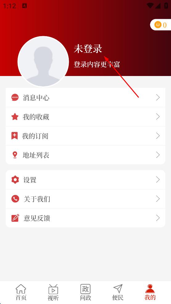 2、在個人中心頁面,看到“未登錄”提示,點擊“登錄”相關(guān)區(qū)域,進入登錄注冊選擇頁面。