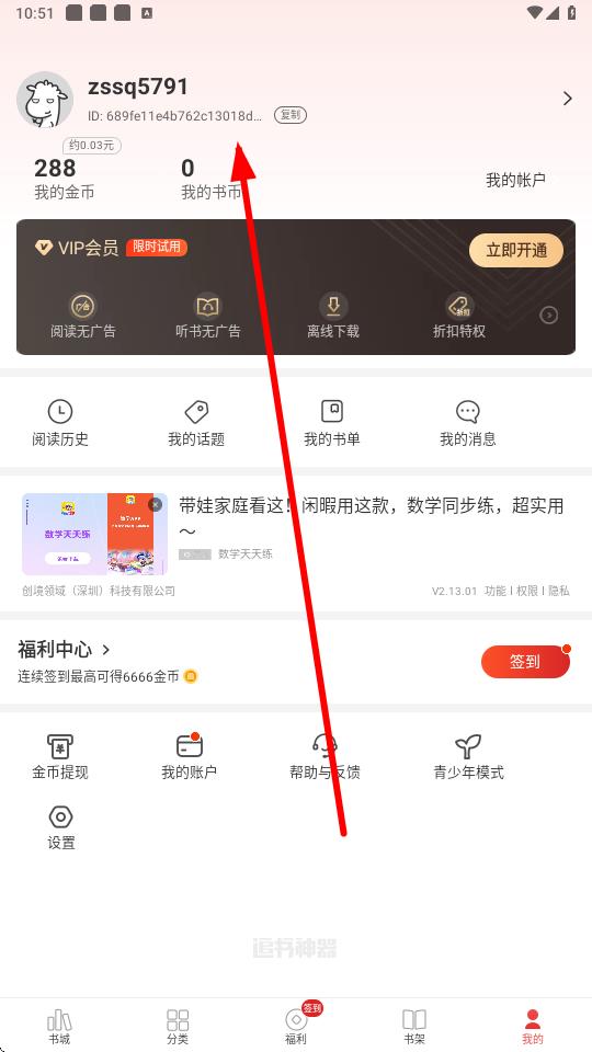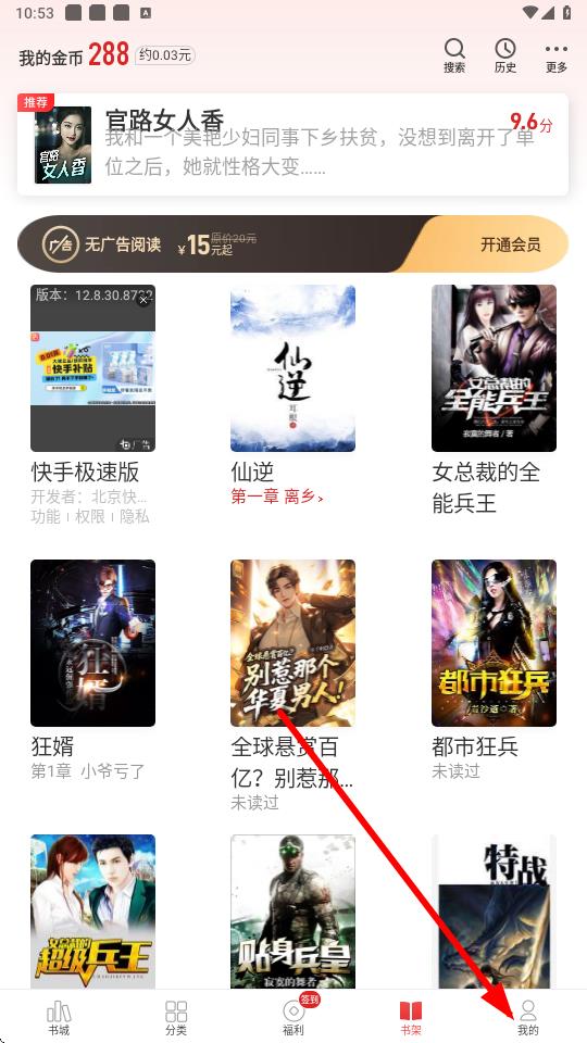 1、打開追書神器app,點擊底部導(dǎo)航欄中的我的選項進入個人頁面。