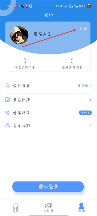 2、在我的頁(yè)面,點(diǎn)擊賬號(hào)右側(cè)的注銷選項(xiàng)。