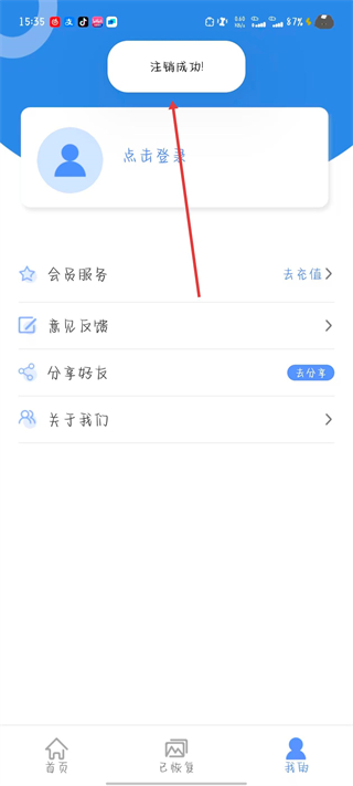 4、賬號(hào)注銷成功后,會(huì)顯示注銷成功提示。