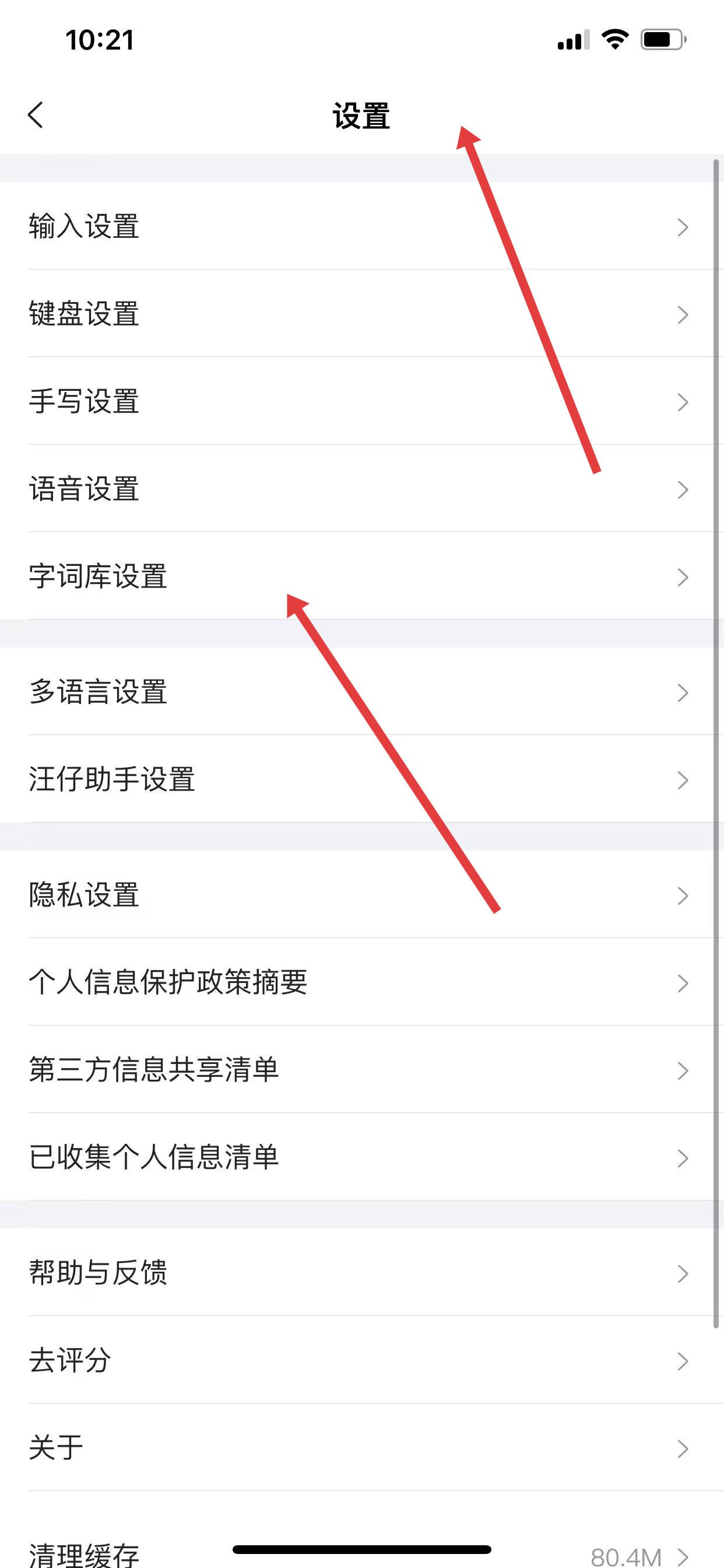 1、打開搜狗輸入法app,進(jìn)入設(shè)置頁面,點(diǎn)擊字詞庫設(shè)置選項(xiàng)
