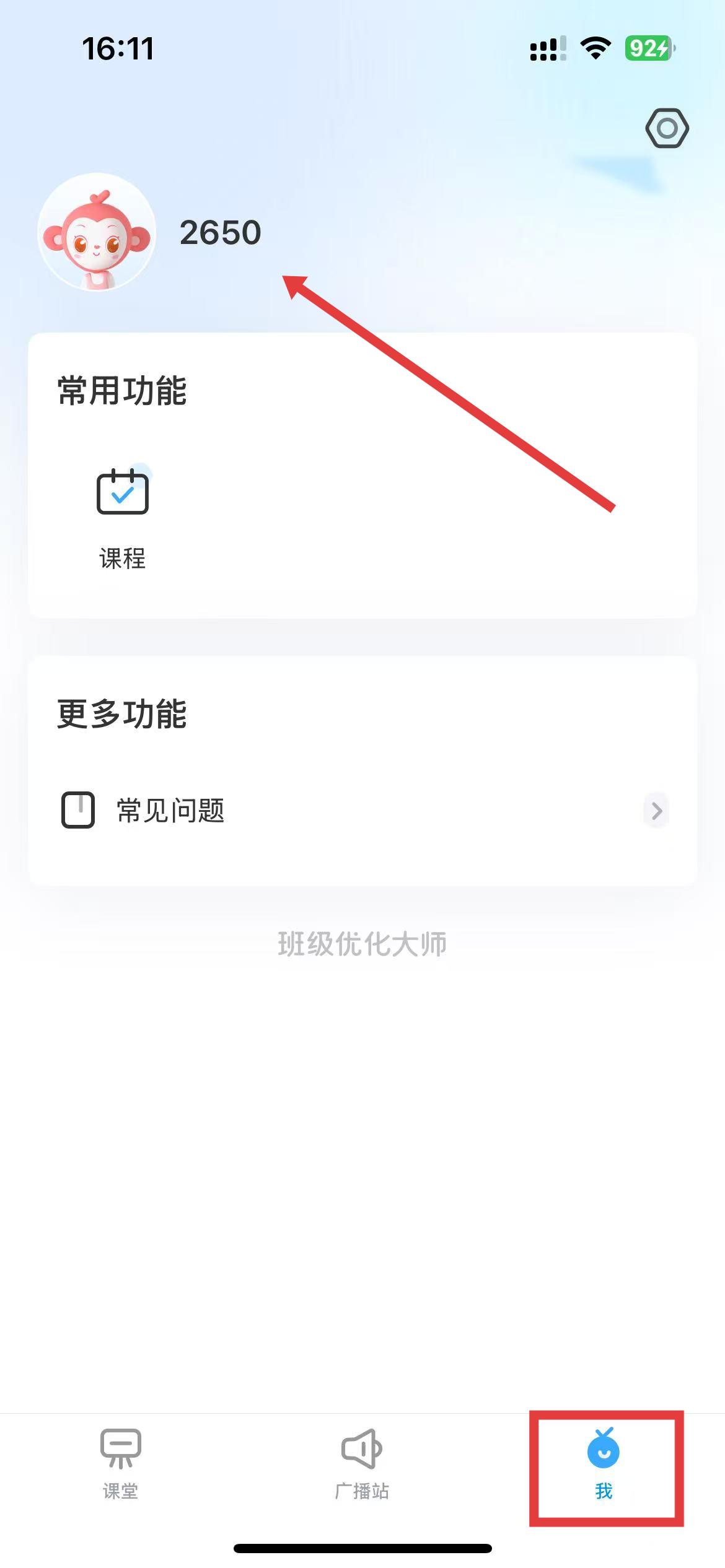 1、打開班級(jí)優(yōu)化大師app,點(diǎn)擊底部中的我選項(xiàng)進(jìn)入個(gè)人界面,點(diǎn)擊頭像區(qū)域進(jìn)入個(gè)人信息頁面。