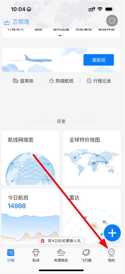 1、打開飛常準(zhǔn)APP,點(diǎn)擊底部導(dǎo)航欄中的我的進(jìn)入個(gè)人頁面。