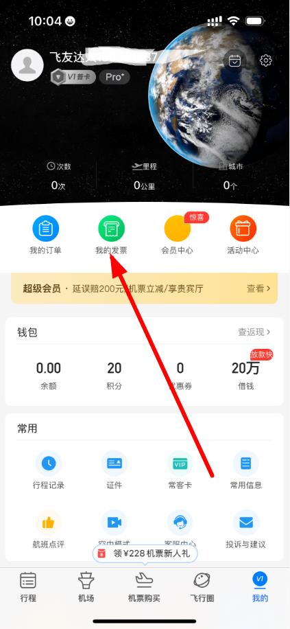 2、在個(gè)人頁面中找到,并點(diǎn)擊我的發(fā)票選項(xiàng)。