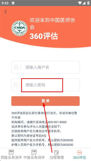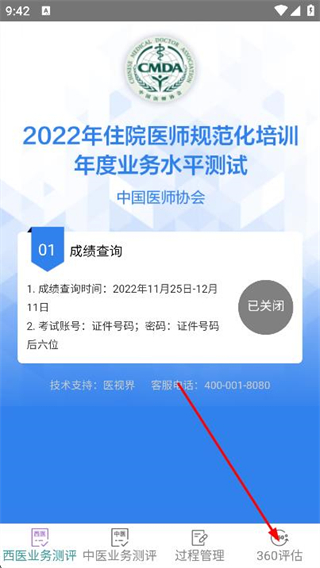 2、在西醫(yī)測評頁面,點(diǎn)擊右下角的360評估。