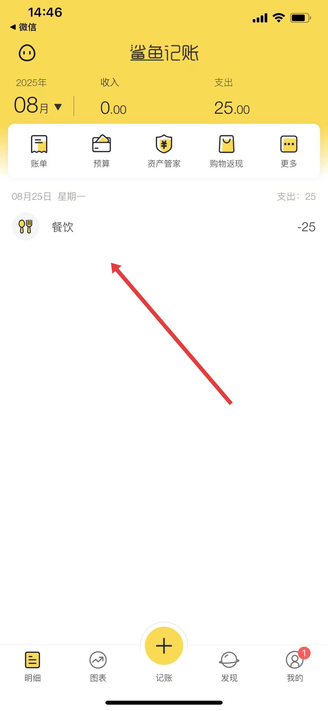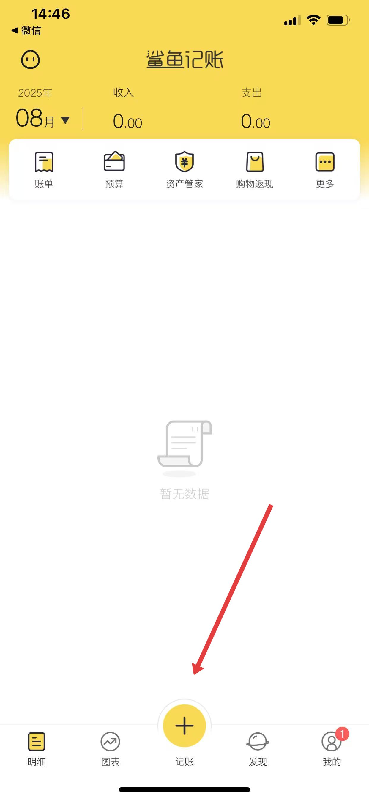 1、打開鯊魚記賬APP,點(diǎn)擊底部中間+記賬按鈕,進(jìn)入記賬頁面。