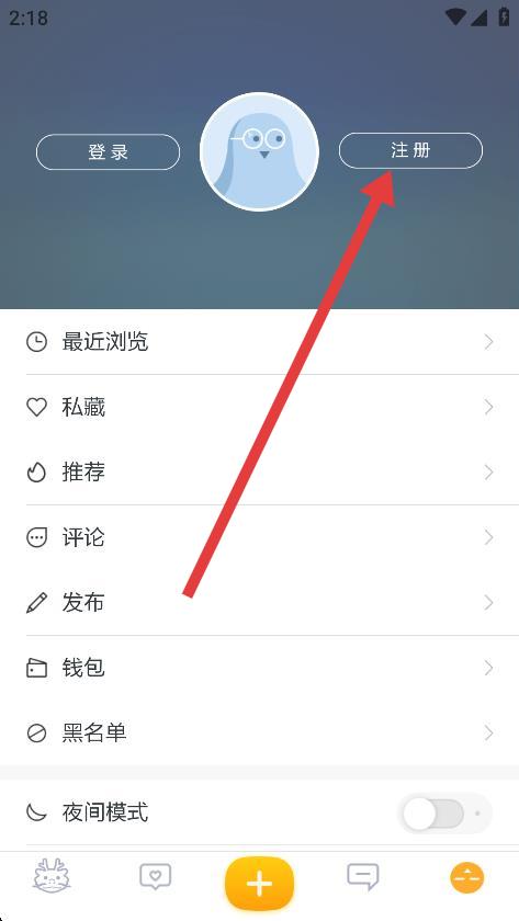 2、在個人中心頁面,點擊頭像右側(cè)的注冊按鈕。