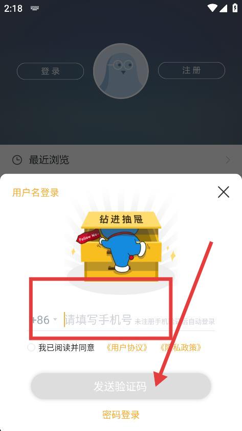 3、輸入自己的手機(jī)號碼,點擊獲取驗證碼。