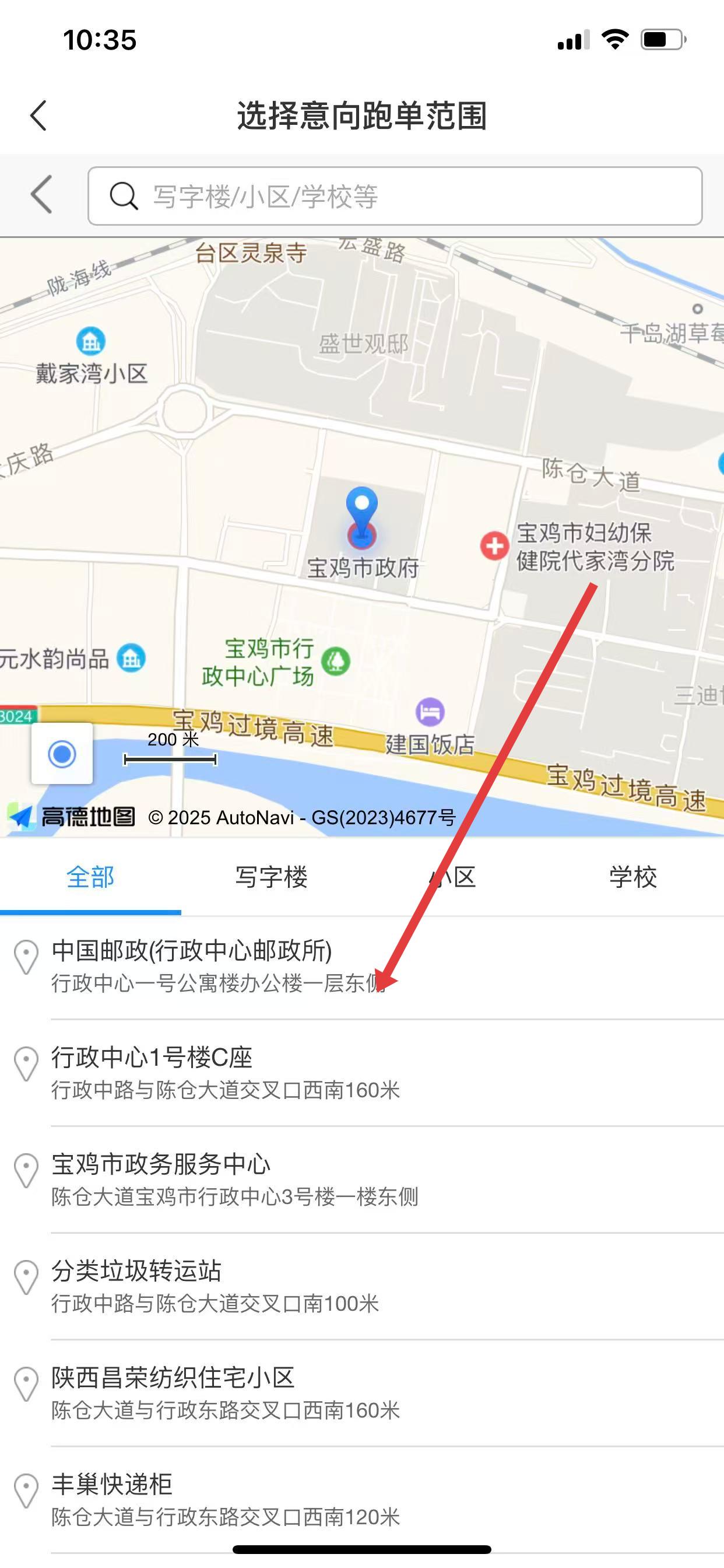 3、選擇跑單范圍,可從地圖定位或下方推薦的具體地點中挑選意向跑單范圍。