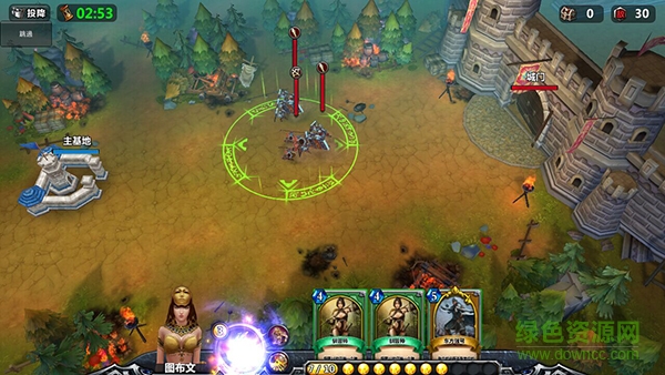 當我們把卡牌拖出卡牌顯示的固有位置時,我們就可以看到戰(zhàn)場上會出現(xiàn)一個綠色圓圈,然后手指上的卡牌會變成戰(zhàn)場上的兵種;然后我們就能把手指上的兵種布置在綠色圓圈中的任意位置了。