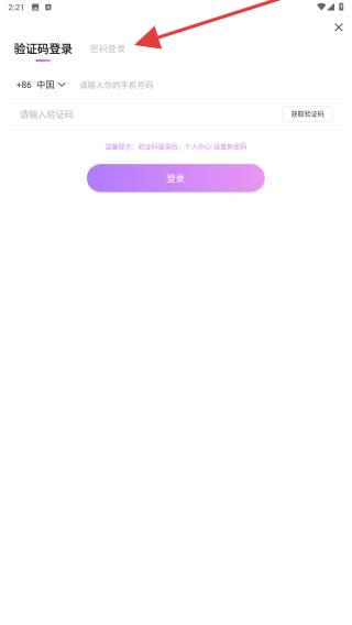 2、在登錄的頁面內(nèi),點(diǎn)擊并切換密碼登錄的區(qū)域。
