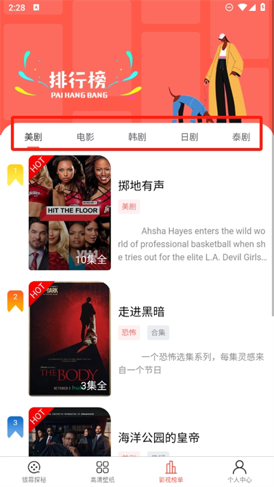 2、進入后可以直接在排行榜處查看不同國家類型的作品,根據(jù)自己的喜好選擇不同國家欄目吧;