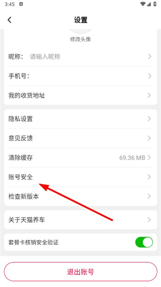 3、在設(shè)置頁(yè)面,點(diǎn)擊賬號(hào)安全選項(xiàng),進(jìn)入賬號(hào)安全頁(yè)面。