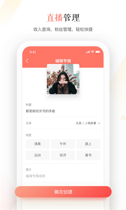 蜻蜓主播app是專為蜻蜓fm平臺(tái)主播設(shè)計(jì)的一款直播管理軟件,在線直播提供強(qiáng)大的節(jié)目錄制功能,一鍵開(kāi)播實(shí)時(shí)與粉絲互動(dòng),個(gè)人中心在線管理方便快捷,歡迎來(lái)下載!