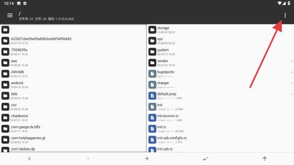 1、進(jìn)入MT管理器的文件目錄界面后,點(diǎn)擊右上角的三點(diǎn)菜單按鈕。