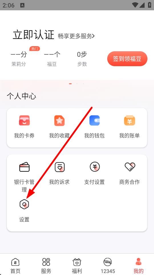 2、在個(gè)人中心頁面里,點(diǎn)擊設(shè)置選項(xiàng),進(jìn)入設(shè)置界面。