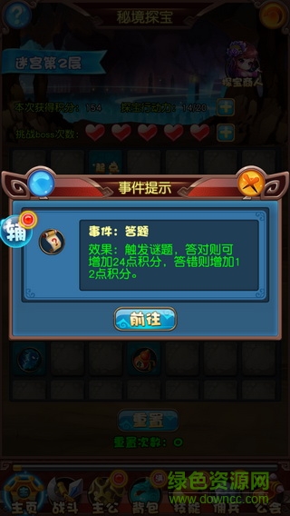 置身于秘境迷宮中進(jìn)行探寶冒險,打怪、開寶箱、答題獲得積分。