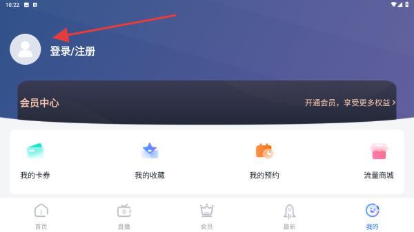 2、在個人中心頁面,用戶需點擊左上角的登錄/注冊的按鈕。
