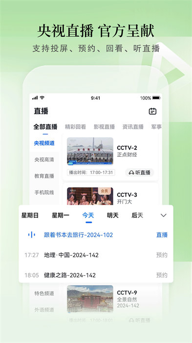 CCTV手機電視-打開手機看電視,百路電視直播,全方位覆蓋央視、衛(wèi)視及地方臺。