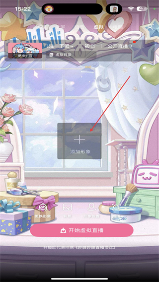 2、進(jìn)入虛擬的界面內(nèi),點(diǎn)擊正中間添加形象的功能按鈕。