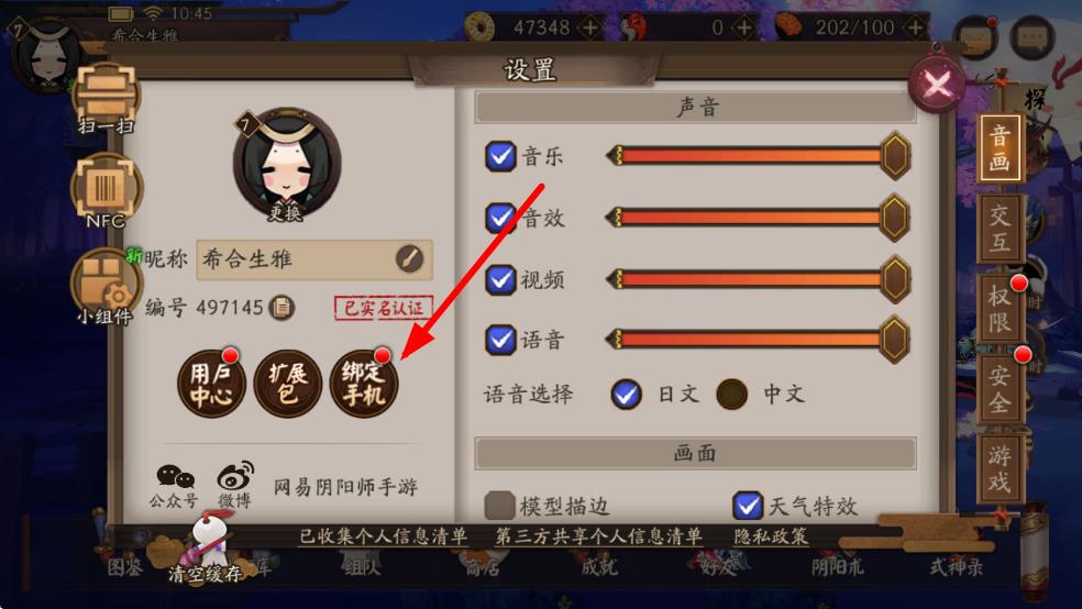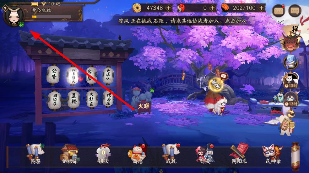 1、點(diǎn)擊陰陽師游戲主界面左上角的頭像,進(jìn)入設(shè)置界面。