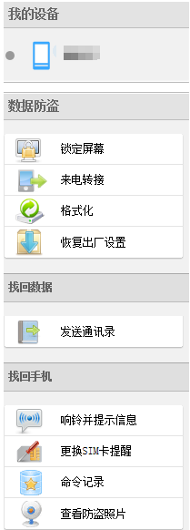 2.登陸找回手機官網,登陸官網之后你就會發(fā)現有好多功能,可以格式手機清除隱私,設置密碼,發(fā)送通訊錄等等。