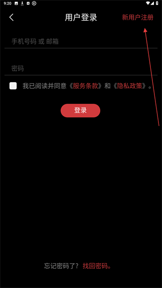 2、進(jìn)入用戶登錄的界面內(nèi),點(diǎn)擊右上角新用戶注冊的按鈕。