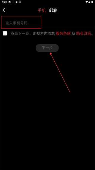 3、在手機(jī)注冊的界面內(nèi),輸入要注冊的手機(jī)號并點(diǎn)擊下一步。