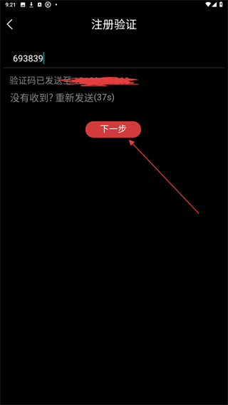 4、將收到的驗(yàn)證碼輸入其中后,用戶需再點(diǎn)擊下一步的按鈕。