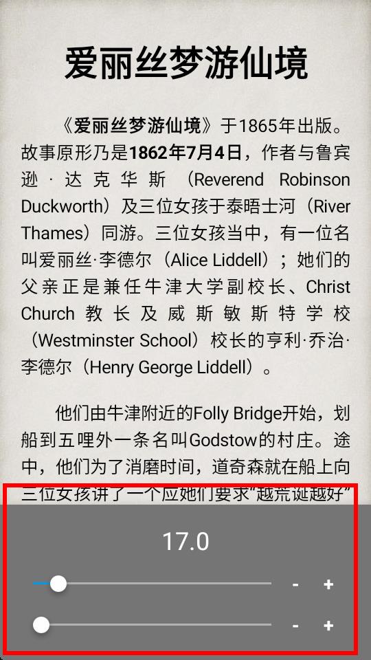 3、在閱讀界面點(diǎn)擊屏幕下方的A±圖標(biāo),這個(gè)是調(diào)節(jié)字體大小的按鈕。